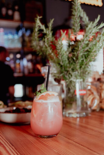 CAZALIS, VERMUTH ROSADO, ALMIBAR DE VINO BLANCO Y PERAS, LIMÓN, TÉ DE HIBISCUS